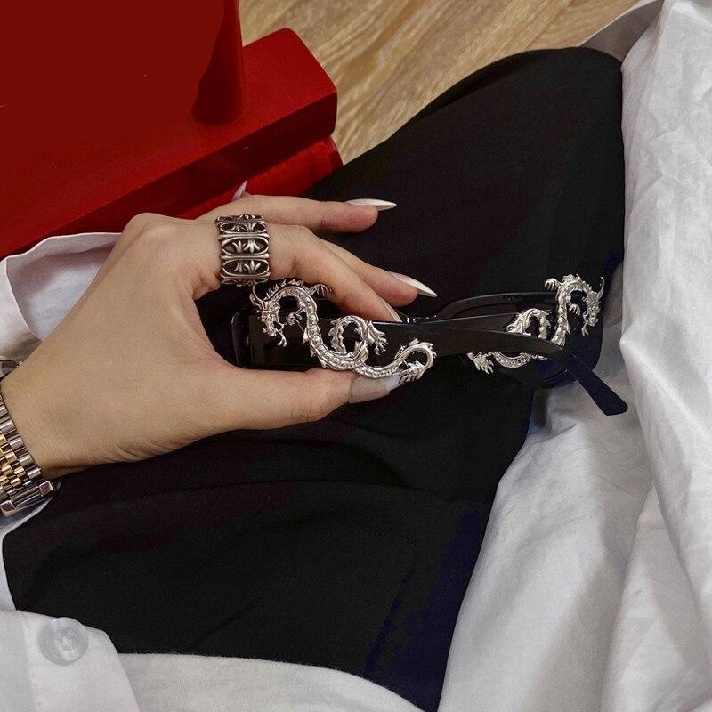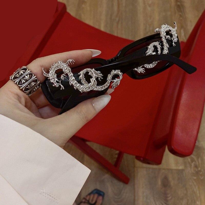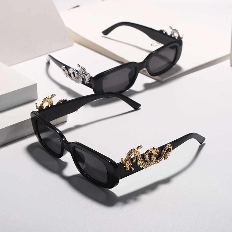 Vous ne passerez pas inaperçue avec cette paire de lunette de soleil vintage avec dragon sur le visage. Elle vous donnera un look original tout en protégeant vos yeux.