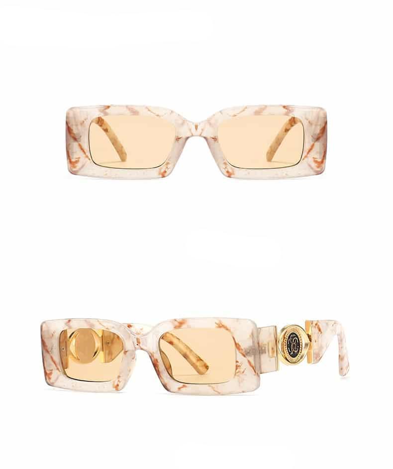 Les Lunettes de soleil luxe rectangulaires Vintage blanches sont des lunettes de soleil à la mode. Fabriquées à partir d’une monture en métal robuste, elles sont recouvertes d’un revêtement blanc résistant aux rayures et aux usures. Elles vous donneront un look vintage se mariant à la perfection avec votre style personnel et élégant. La forme épurée des verres fait ressortir le côté chic qui vous définira toute l’année. Les verres teintés protègent contre les rayonnements nocifs du soleil et réduisent considérablement l’éblouissement pour un meilleur confort visuel. Cette paire de lunettes est idéale pour compléter n’importe quel look quotidien ou occasionnel et ne pas passer inaperçue !