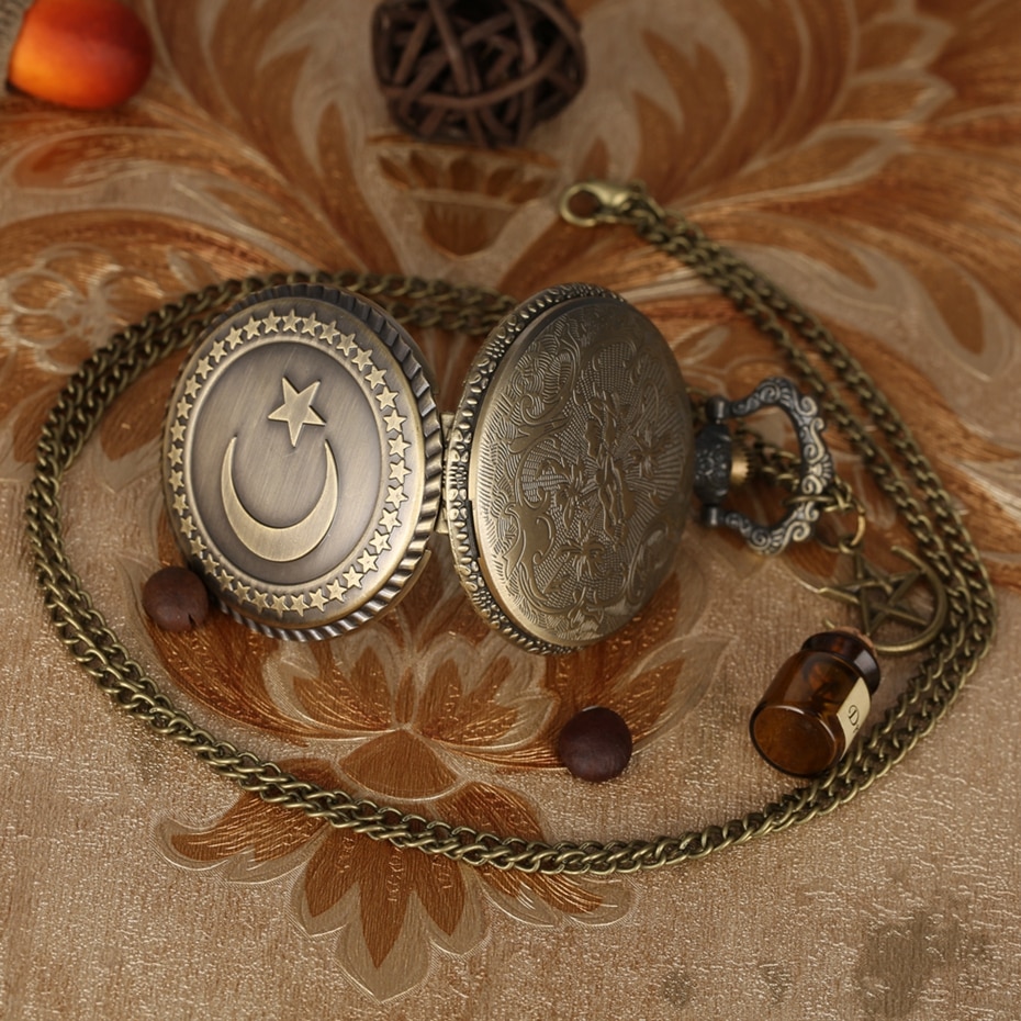 Cette montre à gousset rétro est un incontournable pour tous ceux qui aiment le style vintage. Le motif du drapeau turc est accrocheur et unique et le mouvement à quartz assure une mesure précise de l’heure. Le pendentif en bronze antique est la touche finale parfaite de cet accessoire élégant.