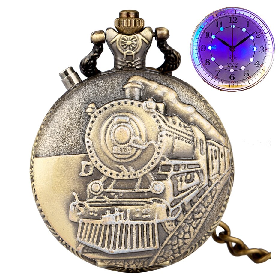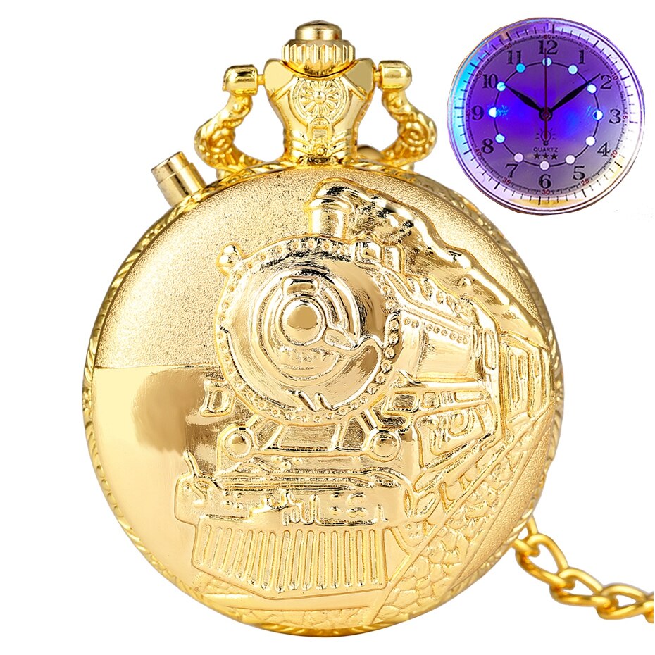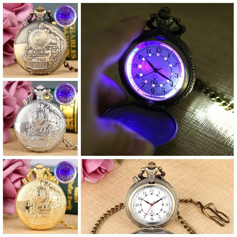 Cette incroyable montre à gousset lumineuse avec motif de locomotive est parfaite pour tout amateur de trains ou d’antiquités. Le cadran lumineux vintage est sculpté en forme de train à vapeur et le design général a un côté nettement rétro. Alimentée par un mouvement à quartz, cette montre est précise et de collection.