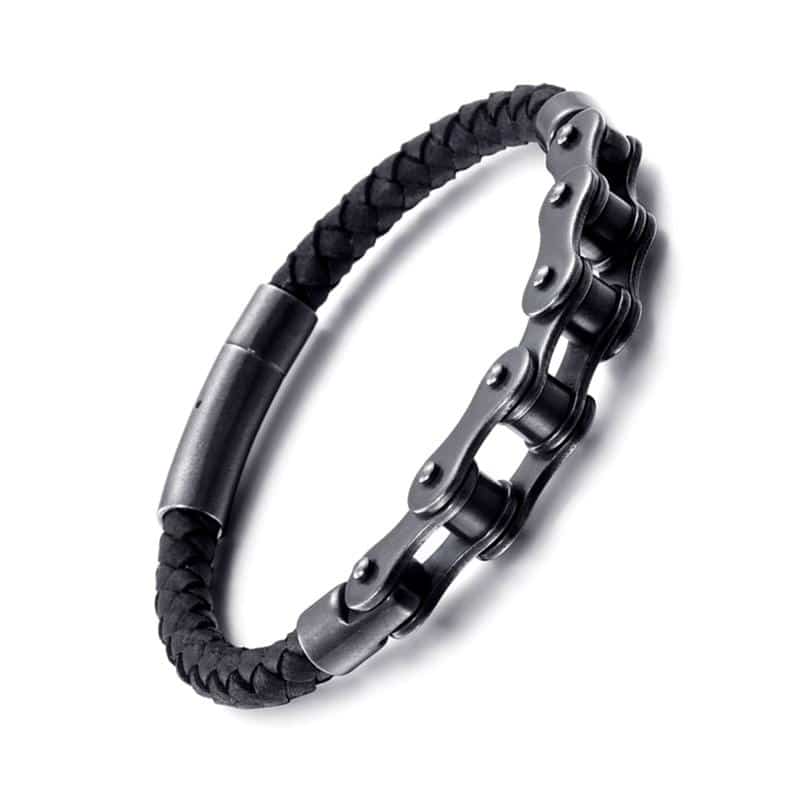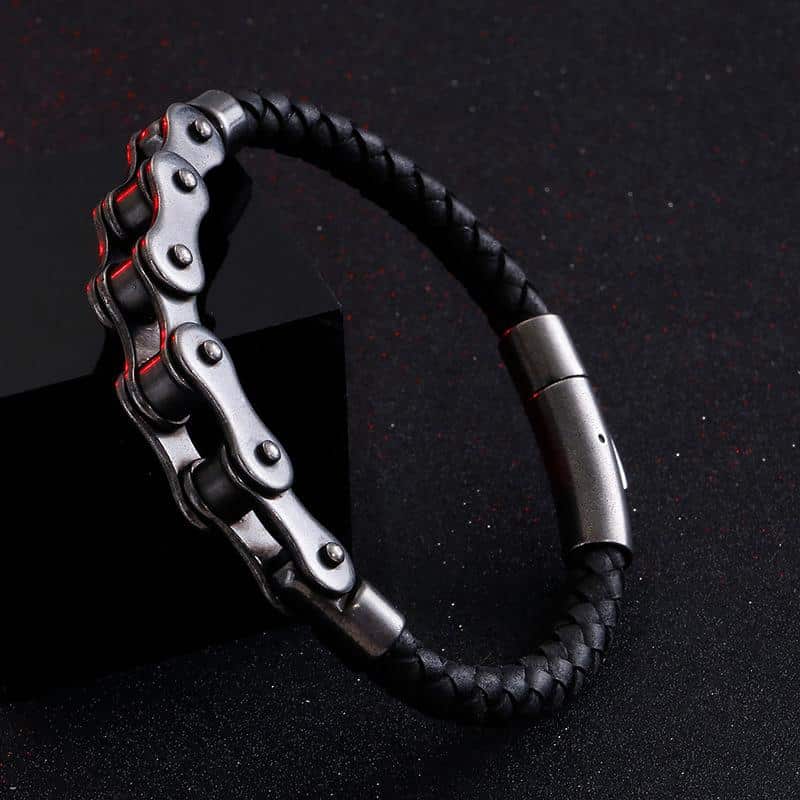 Ce bracelet punk en cuir tressé est parfait pour le passionné de moto dans votre vie. La chaîne en métal de haute qualité est classique et vintage, tandis que le cuir ajoute une touche de punk. C’est un excellent cadeau.