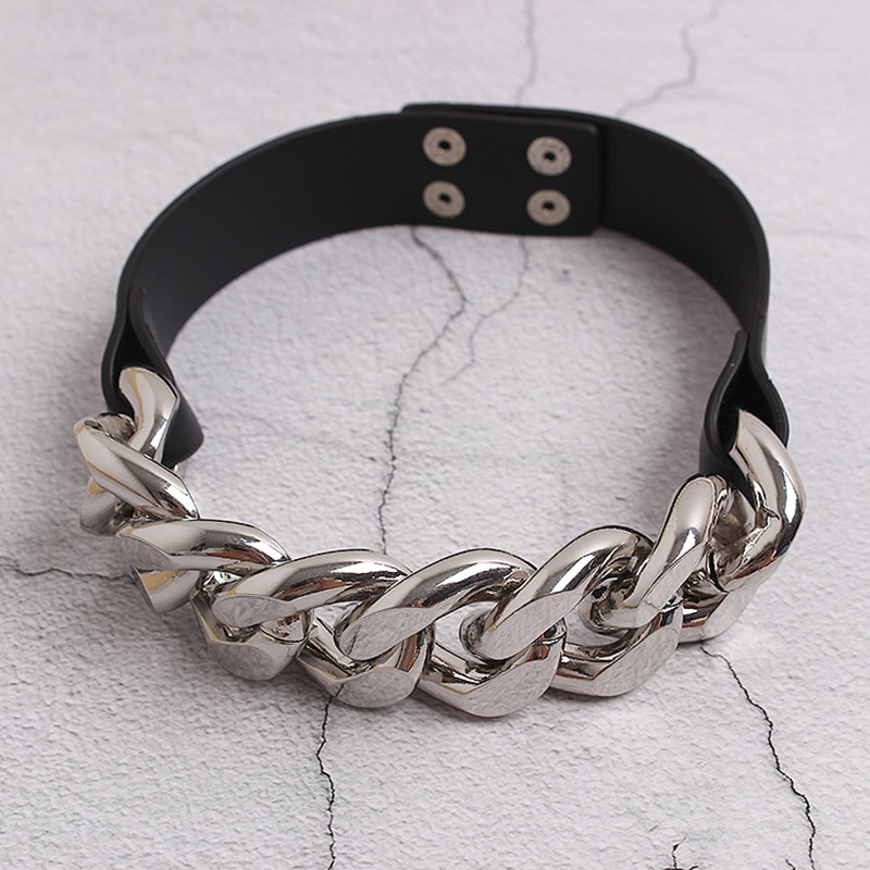Optez pour ce magnifique collier ras de cou en chaîne métallique et simili cuir noir ! Un accessoire pour femme qui donne un look instantanément à votre tenue. Il habille votre cou avec style et originalité.