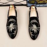 Avec nos mocassins brodés pour homme vous allez pouvoir exprimer votre style unique. L’aspect velours et les broderies détaillées en fils dorés ajoutent une richesse visuelle et une élégance à ces chaussures vintage.