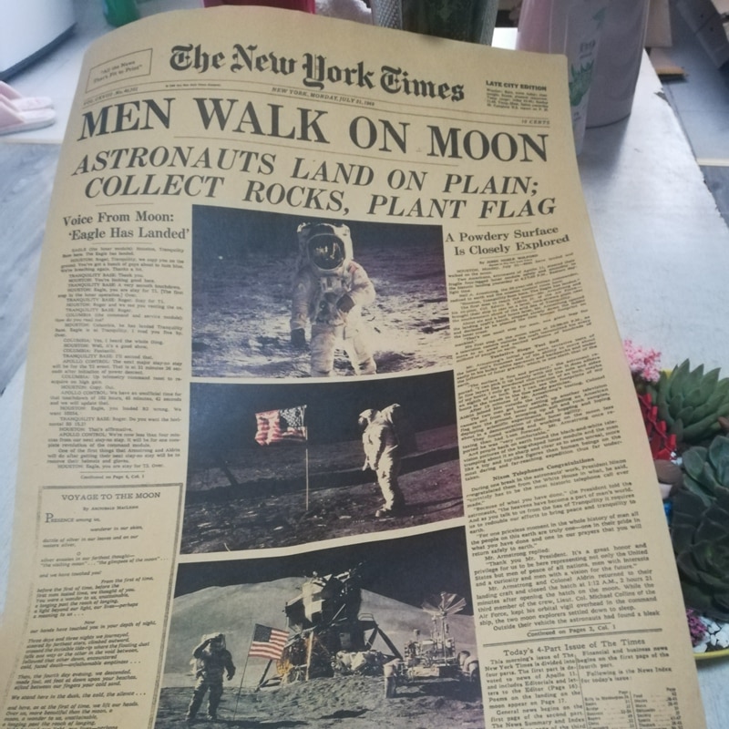 Cette affiche vintage du journal The New York Times “MEN WALK ON THE MOON” est une façon parfaite de décorer votre chambre et d’ajouter une touche de style rétro. Le poster est imprimé sur du papier kraft, ce qui lui donne un aspect rustique. Il s’agit également d’une pièce originale et historique qui ferait un excellent ajout à toute collection.