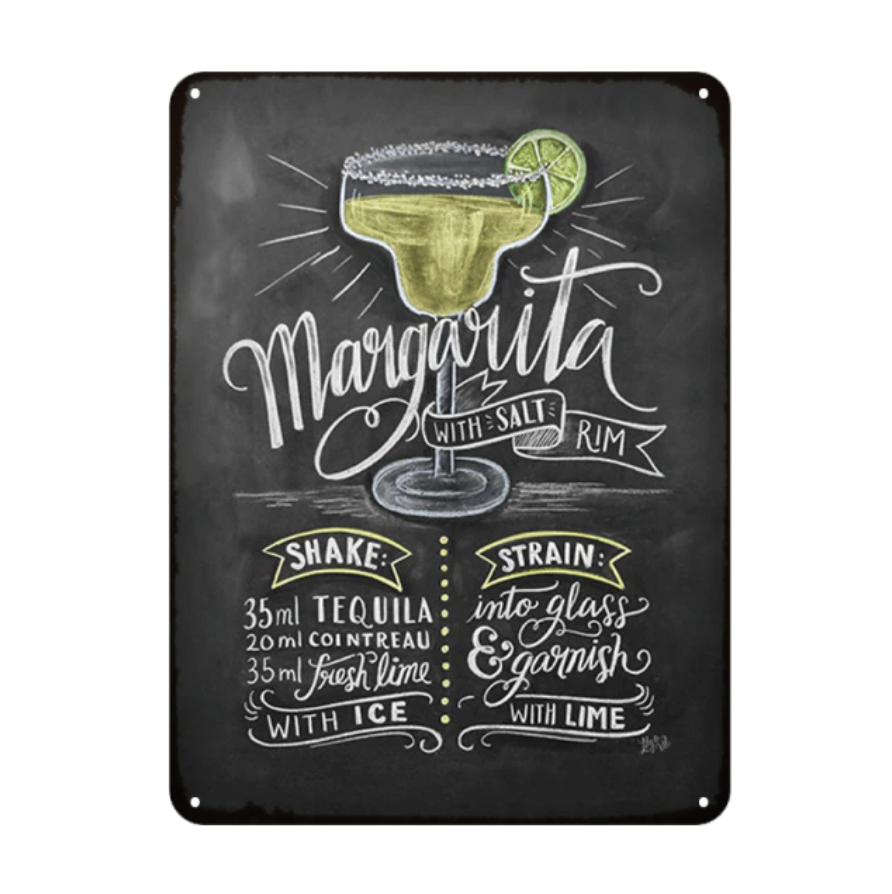 Plaque vintage en métal cocktail "Margarita" tous les produits