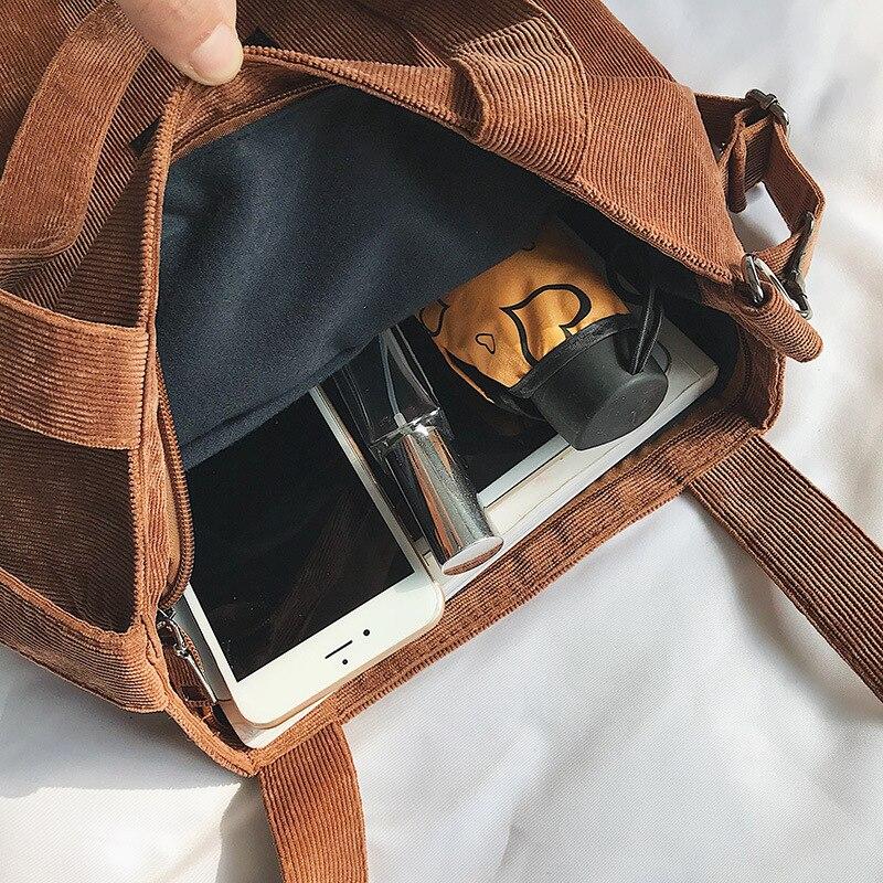 Ce sac à main vintage est fait en velours côtelé. Il bénéficie par ailleurs d’une doublure en coton. Doux et chaud, ce sac pour femme est en plus confortable à porter. Son compartiment spacieux en fait un très joli sac pour le shopping.
