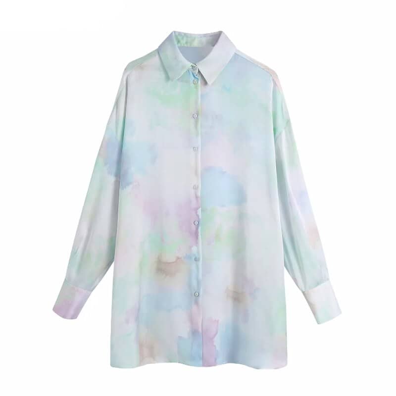Vous allez adorer cette chemise qui ne manque pas d’originalité et de couleurs ! La chemise longue et fluide vintage pour femme imprimé tie and dye est indémodable. Ajoutez la touche rétro et colorée à votre tenue pour un look tendance à souhait !
