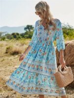 Cette robe longue florale de style vintage pour femme est parfaite pour une journée décontractée. Elle présente une taille haute et des demi-manches et le magnifique imprimé floral vous fera sortir du lot.