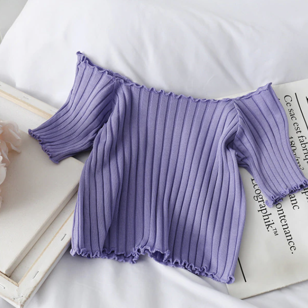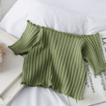 Vous allez adorer ce sublime petit t-shirt crop top vintage à épaules dénudées et petits froufrous pour femme. Disponible en plusieurs coloris, ce top est doux et agréable à porter pour votre plus grand bonheur.