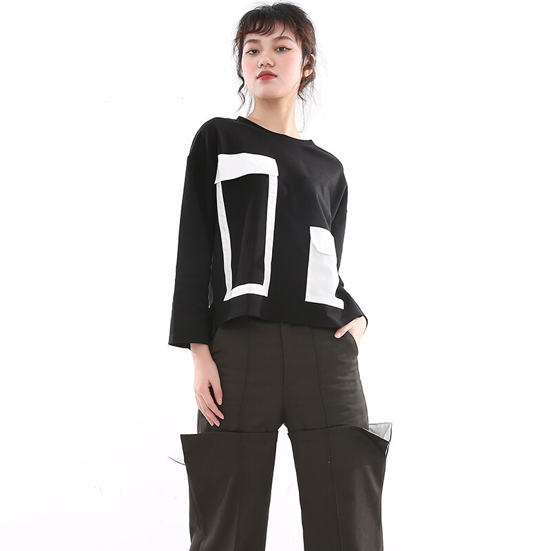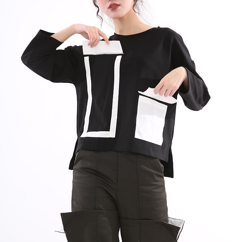 Adoptez le style vintage qui vous va bien avec ce sublime t-shirt à manches longues et col rond aux motifs géométriques rétro ! Le noir et blanc est indémodable et s’accorde facilement pour une tenue au look tendance.