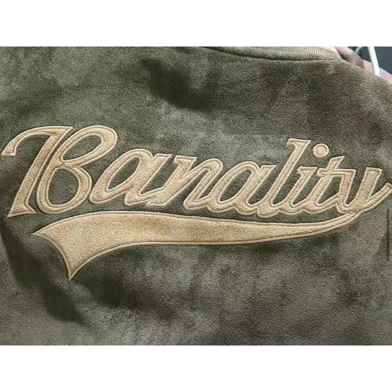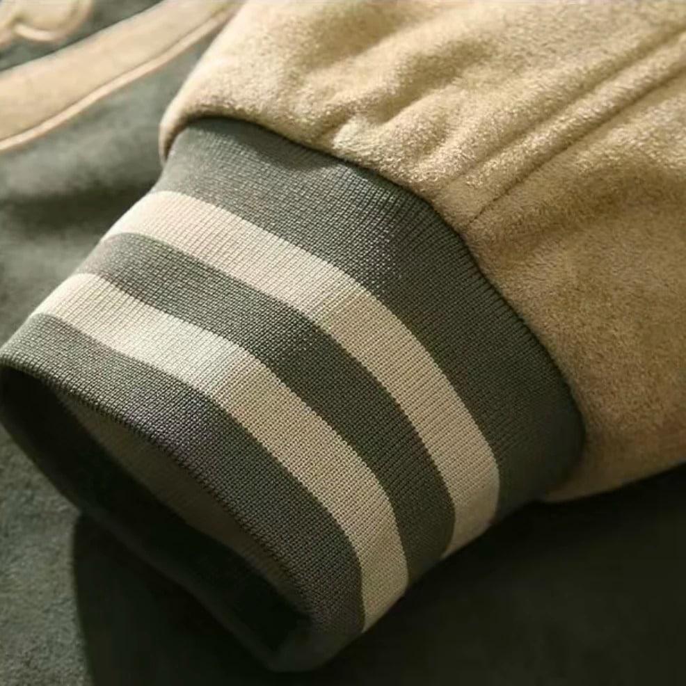Sa texture douce et soyeuse offre une sensation de luxe. Avec ses finitions impeccables de bords côtes au bas des manches, de la veste et au col, elle incarne parfaitement l’esprit vintage du football américain.